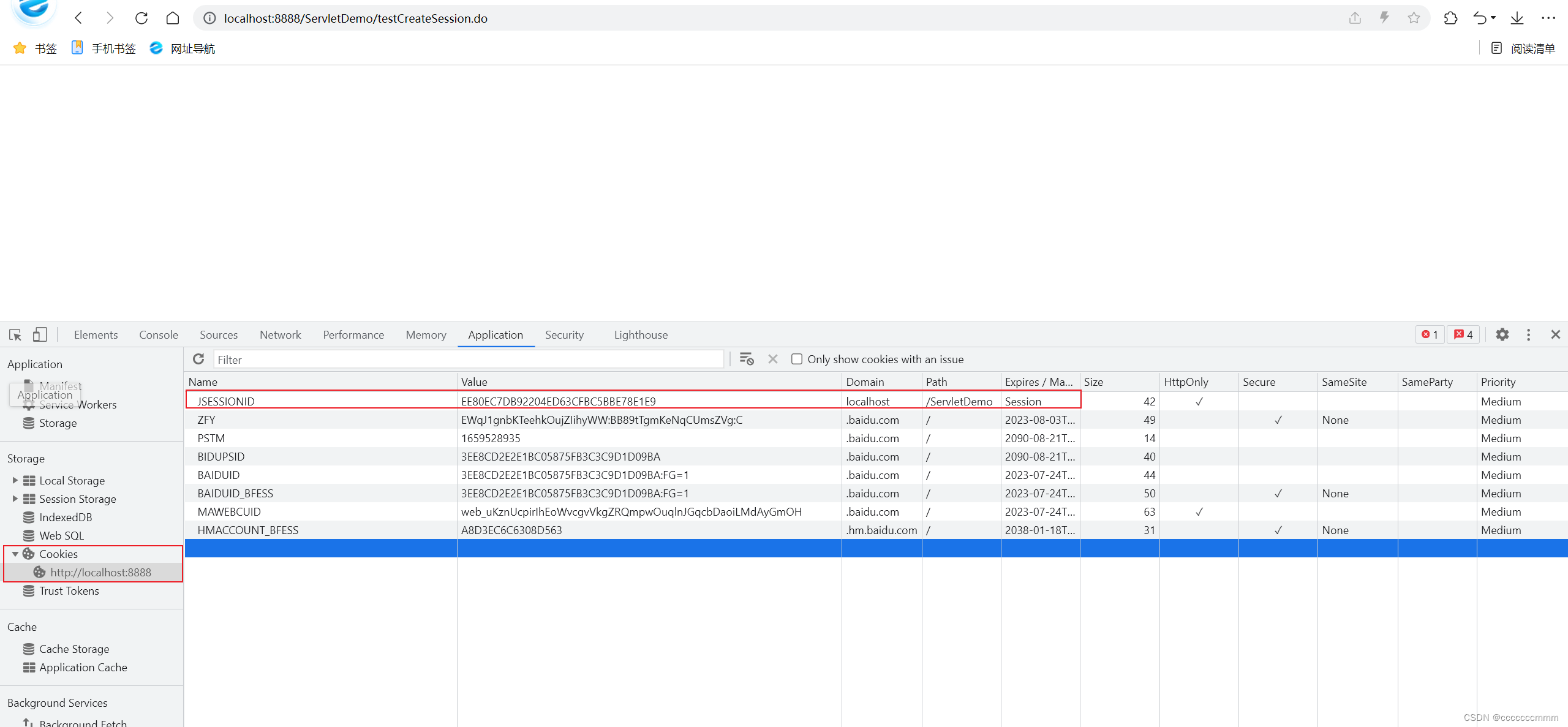 访问了testCreateSession.do后,我们可以发现Cookie中多了一个jsessionid