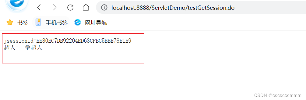 通过访问testGetSession.do我们可以获取到jsessionid和超人对应的数据