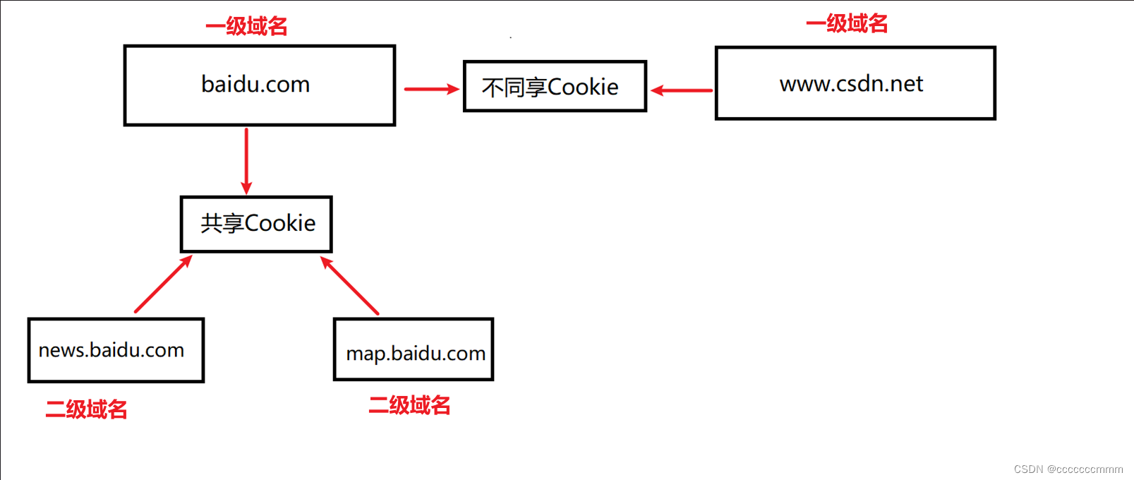 Cookie不支持一级域名的跨域,支持二级域名的跨域。