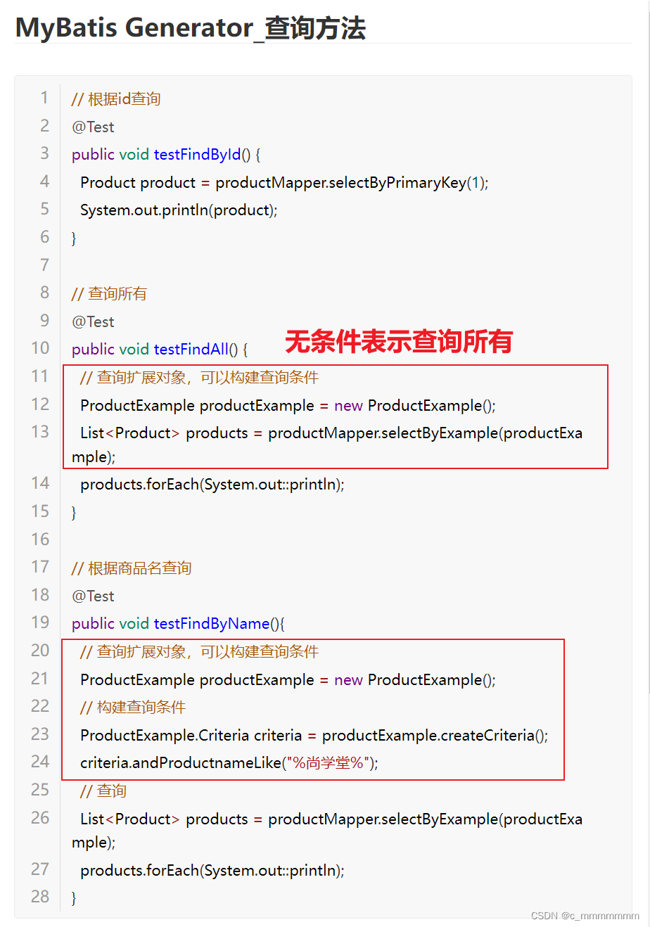 - ProductExample.java:查询扩展类,该类可以构造复杂的查询条件。