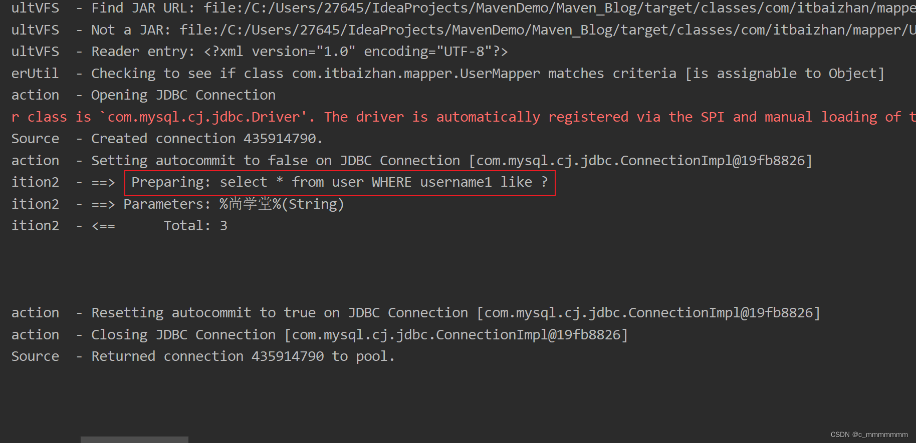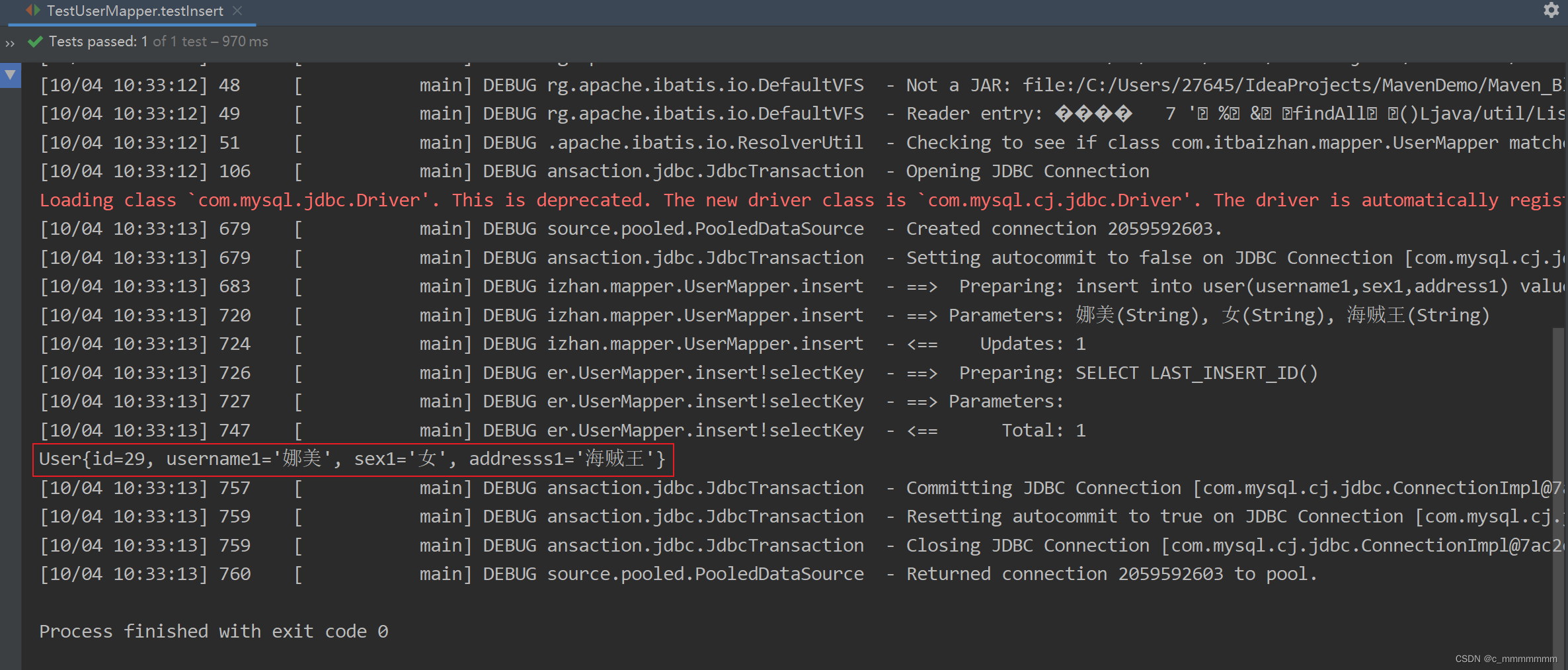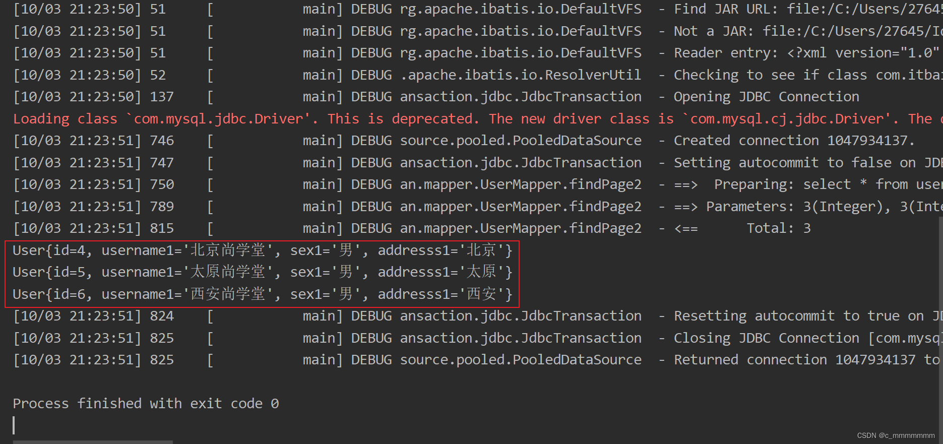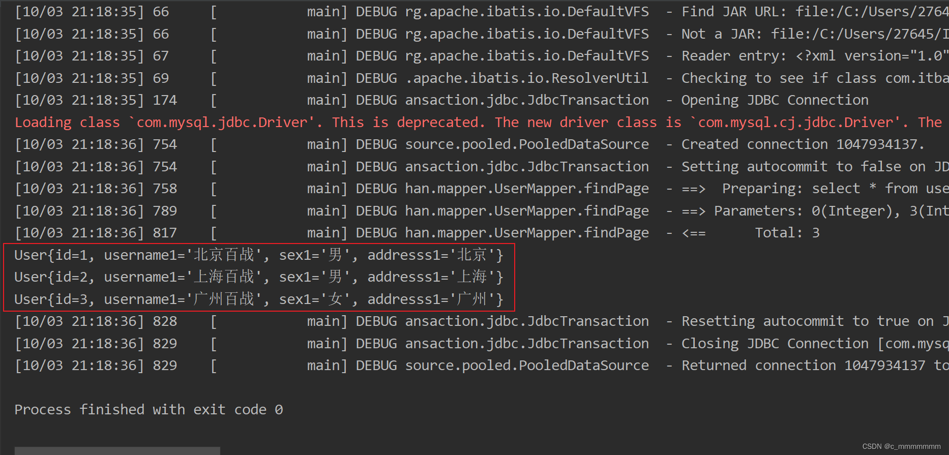 //MyBatis会自动根据sql语句查询并封装为User对象放到该容器中