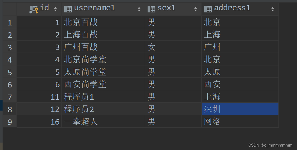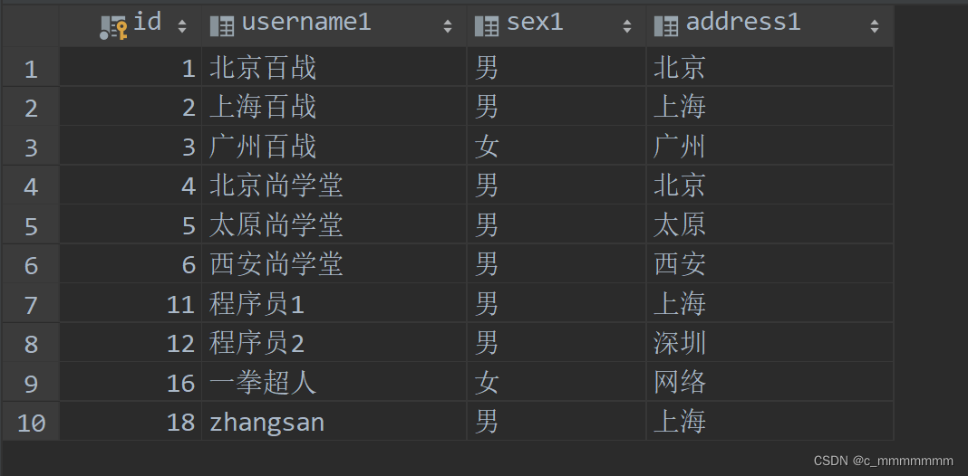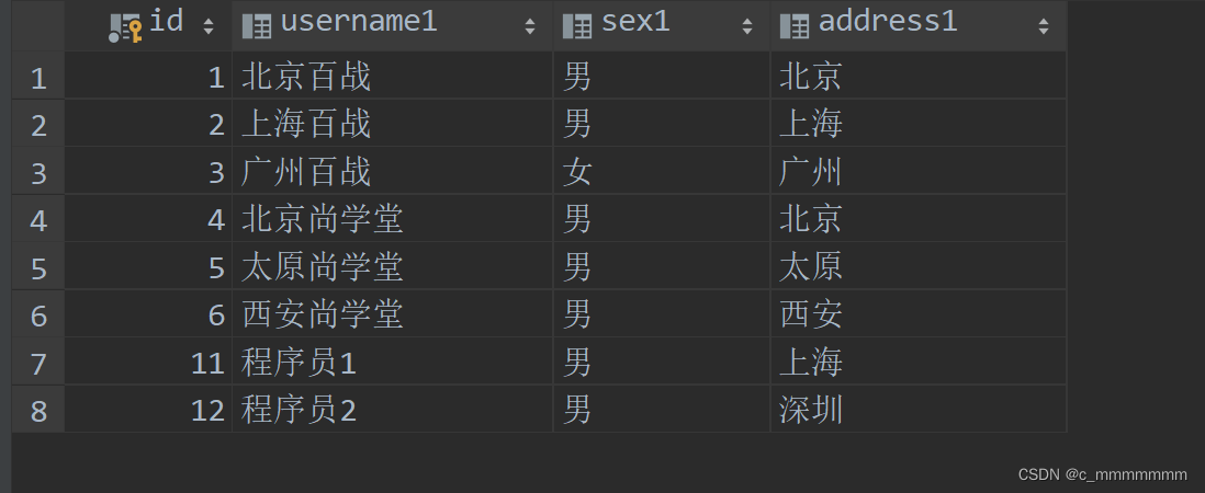 <!-- 数据库表,表名不要和其他库中的表名一样 -->