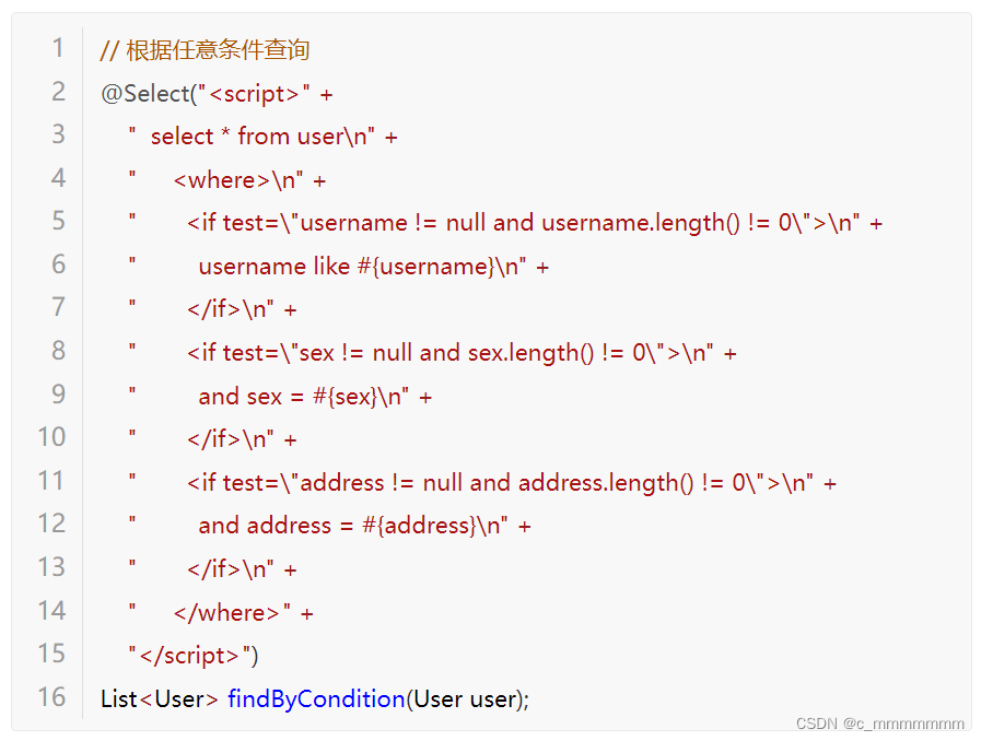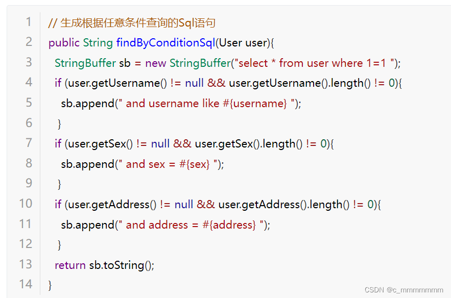 然后通过扩展类Example的内部类Criteria定义查询条件,如果没有定义查询条件那么默认查询所有