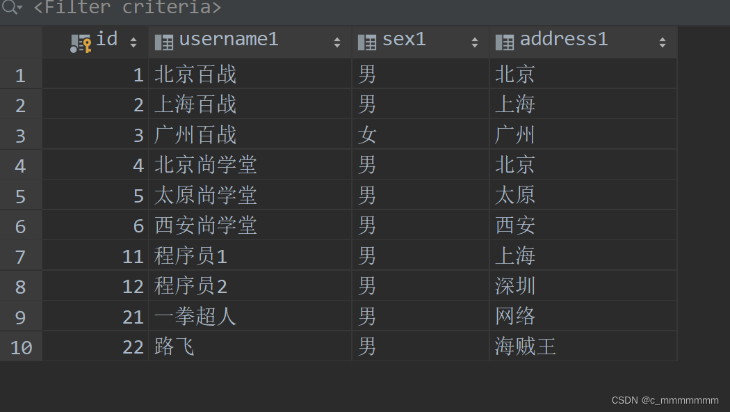 - Criterion:代表一个字段。