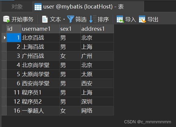 首先我们需要有一张表进行测试,我们这里使用user表进行测试