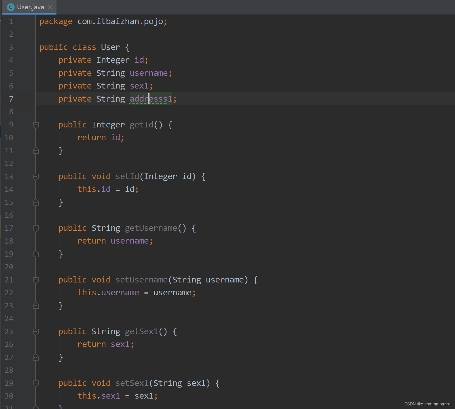 4. 创建实体类(实体类的名字建议和表名相同,且实体类的属性和表的列名相同)