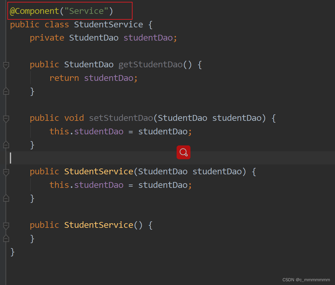 private StudentDao studentDao; // bean属性