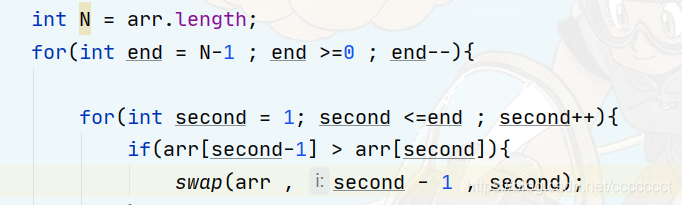 N为数组的长度 设end为数组总长度减1的长度 如果end>0 那么end-- 从右往左一直遍历