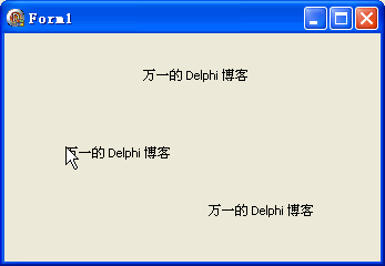 //声明: DrawText( hDC: HDC; {设备句柄} lpString: PChar; {文本} nCount: Integer; {要绘制的字符个数; -1 表示全部} var lpRect: TRect; {矩形结构} uFormat: UINT {选项} ): Integer; {返回文本高度} //uFormat 参数的可选值: DT_TOP = 0; {顶对齐, 须 or DT_SINGLELINE} DT_LEFT = 0; {左对齐} DT_CENTER = 1; {水平居中} DT_RIGHT = 2; {右对齐} DT_VCENTER = 4; {垂直居中, 须 or DT_SINGLELINE} DT_BOTTOM = 8; {底对齐, 须 or DT_SINGLELINE} DT_WORDBREAK = $10; {给超出边界的单词换行; 如果 SetTextAlign 函数设置了 TA_UPDATECP, 这里的设置无效} DT_SINGLELINE = $20; {单行文本} DT_EXPANDTABS = $40; {扩展制表符, 默认制表跨 8 个字符} DT_TABSTOP = $80; {TAB 后添加的字符数} DT_NOCLIP = $100; {使文本不限制在指定的矩形内} DT_EXTERNALLEADING = $200; {返回的高度包括字体的外部行距} DT_CALCRECT = $400; {自动检测容纳文本的矩形的高度和宽度, 并返回高度, 但文本不被绘制} DT_NOPREFIX = $800; {不处理前缀字符(&); 默认时, & 后的字符会被添加下划线} DT_INTERNAL = $1000; {用系统字体来计算文本高度} DT_HIDEPREFIX = $00100000; {隐藏下划线} DT_PREFIXONLY = $00200000; {将 & 解释为前缀} //举例: procedure TForm1.FormMouseUp(Sender: TObject; Button: TMouseButton; Shift: TShiftState; X, Y: Integer); var MyRect: TRect; const str = '万一的 Delphi 博客'; begin MyRect.Left := X; MyRect.Top := Y; MyRect.Right := X + 100; MyRect.Bottom := Y + 100; DrawText(Canvas.Handle, str, -1, MyRect, DT_LEFT); end;