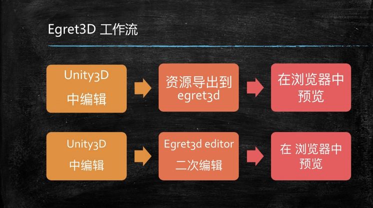 除此之外,如果您现在已经有了Egret3D编辑器,可以在 Unity3D中的资源导出后,在 Egret3D编辑器中进行二次编辑。我们开发团队的工作流是,在 Unity3D中负责制作素材,然后在 Egret3D 编辑器中负责编辑场景、添加组件和调整组件数值预览。