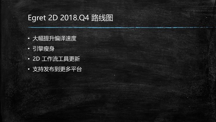 最后一条,我认为非常重要,支持白鹭引擎发布到更多的平台,今天白鹭引擎可以发布到H5、iOS、安卓、还有微信小游戏、QQ玩一玩等等很多的平台,2018的Q4版本我们将支持发布到更多的平台上,敬请期待。