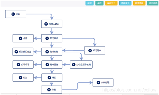 我们以一个线性的公文流程来设计签批组件的使用过程。
