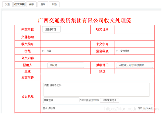 我们在表单里设置了签批组件,也就是标记那些文本框是特殊的文本框,这个文本框就是签批组件,默认的签批组件都是只读的。只有这个节点与指定的签批组件绑定才能被激活。