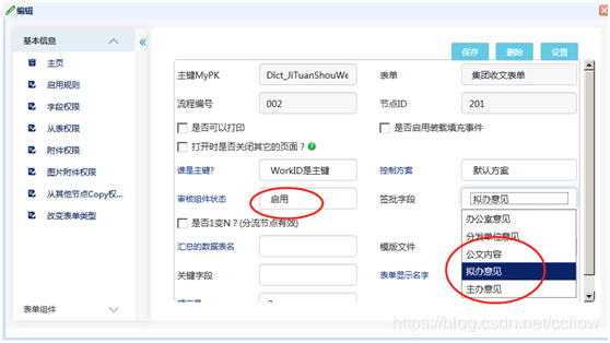 - 每个签批组件对应不同的节点,在节点与表单的对应关系里设置该字段。