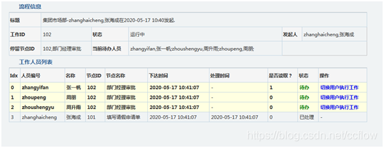 数据库信息:可以查看工作流引擎的控制表的数据变化情况