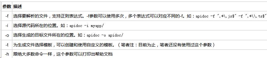 apidoc中的重要命令和参数。apidoc的命令格式如下: