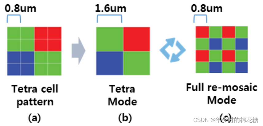 为了解决像素尺寸缩小所带来的性能下降问题,现在大家普遍采用4合1的像素设计,它与其他几种像素设计结构的差异如下: