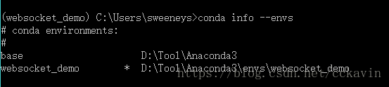 示例:C:\Users\sweeneys>conda create --name websocket_demo python=2.7