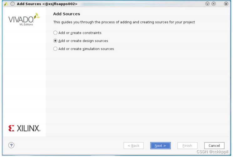 2.选择与要添加的文件相对应的选项,然后单击“下一步”。下图显示了添加或创建设计源页面,如果添加或选择“创建设计源”。
