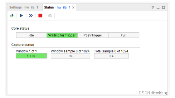 • “Capture status”:指示当前采集窗口、当前采集窗口中采集的当前样本数以及 ILA 核采集的样本总数。当 ILA 核