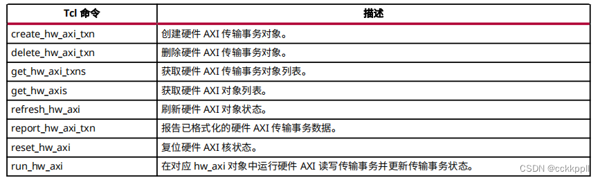 hw_axi 和 hw_axi_txn Tcl 命令的描述