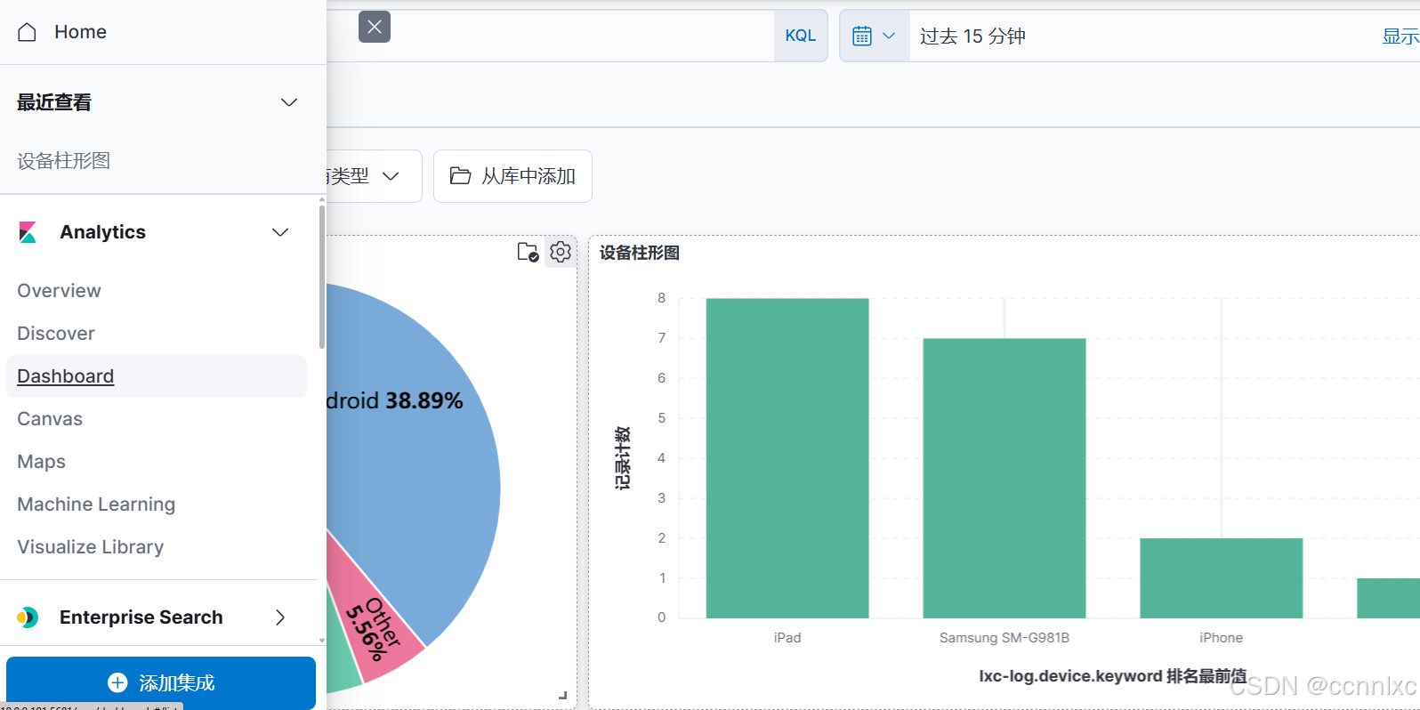 3.采集之后便可以在kibana创建仪表板(可以先添加到Visualize 库,再添加到仪表板)