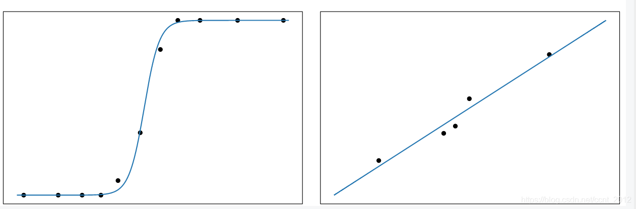 ,拟合出近似的曲线,而像下列右图一样拟合出来是直线的就称为线性回归:
