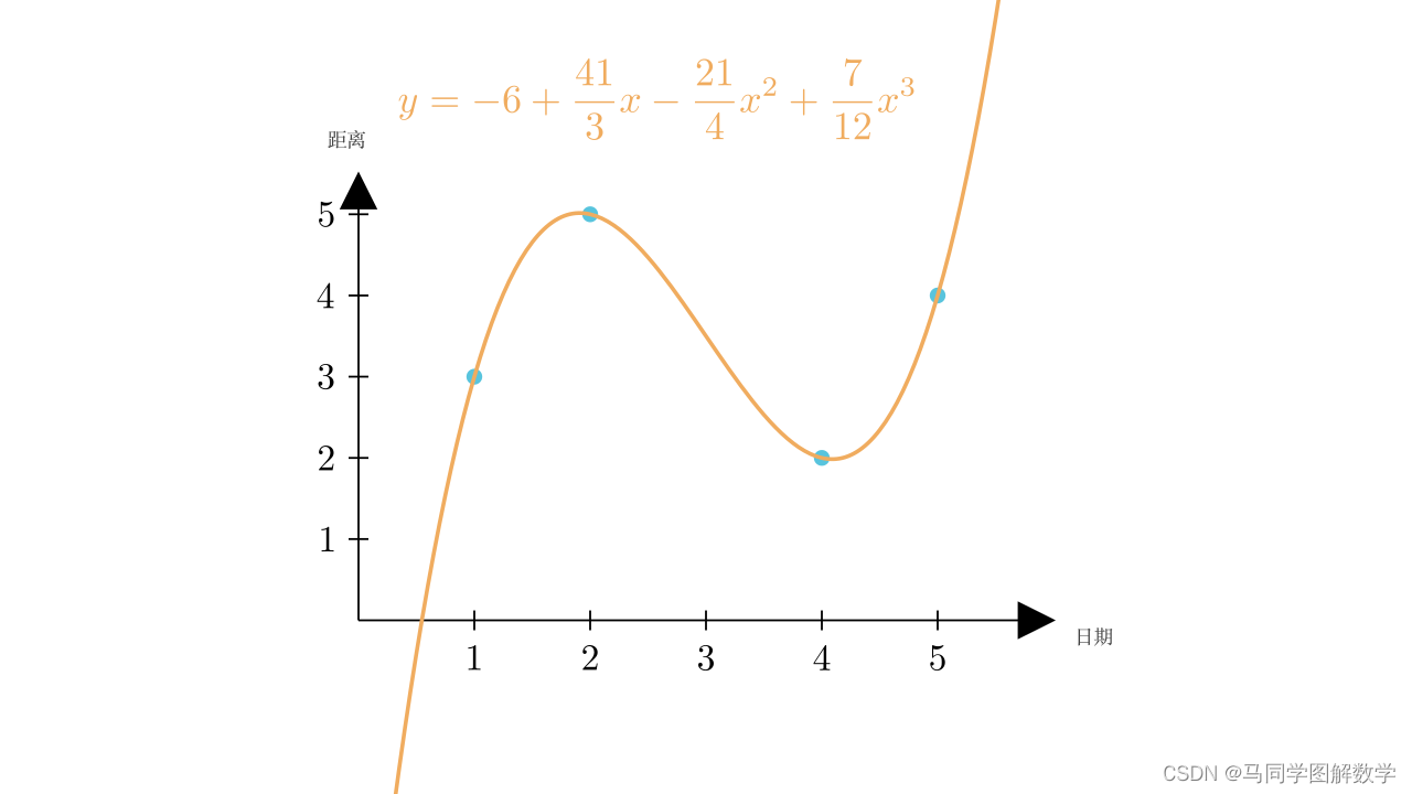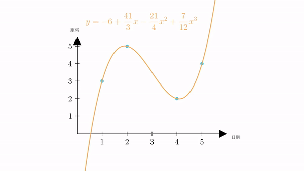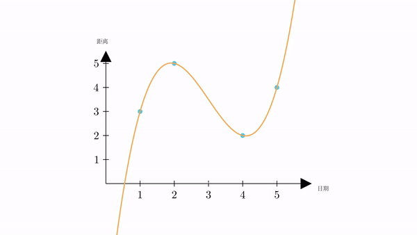 因为要穿越的已知点是4个,那么可以假设描述轨迹的曲线为3次多项