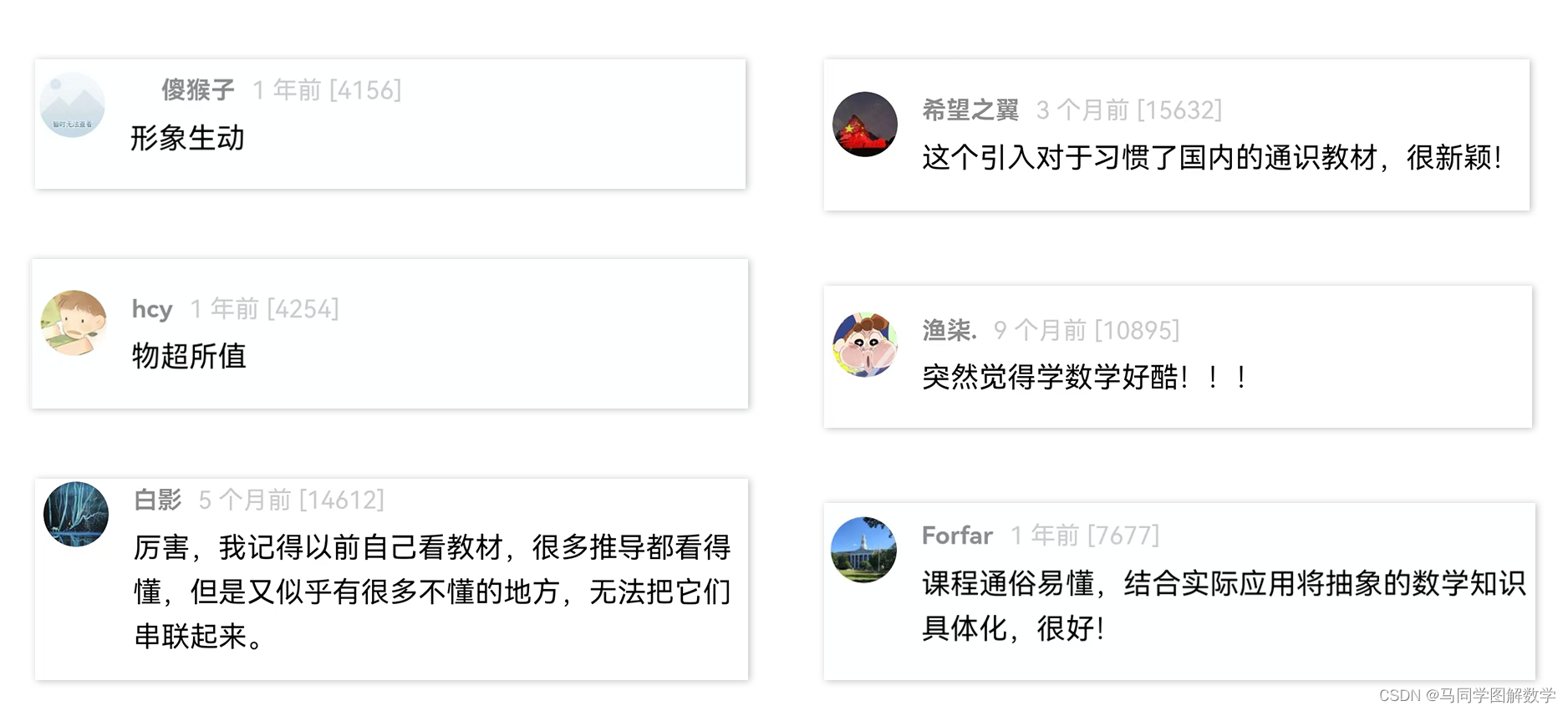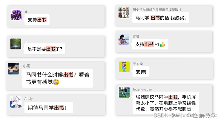 从2018年首个线上版本完成,四年时间,《线性代数》的线上版在微信、知乎、B站等各大平台接受 50 万读者的评论、点赞,在批评和建议中不断完善改进。