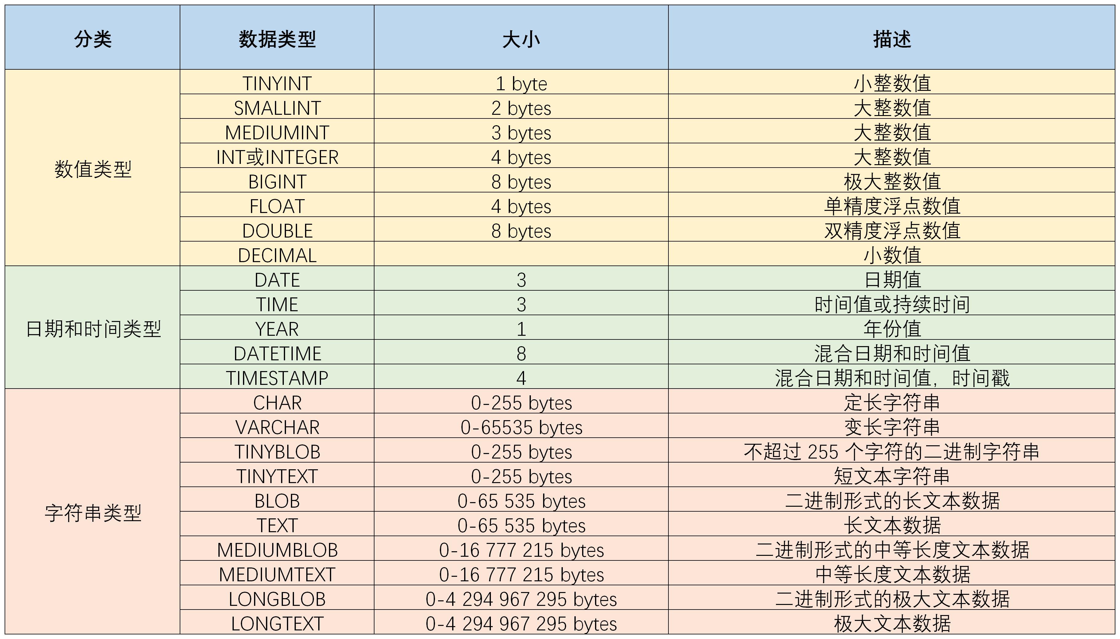 date : 日期值。只包含年月日 eg :birthday date : datetime : 混合日期和时间值。包含年月日时分秒 -