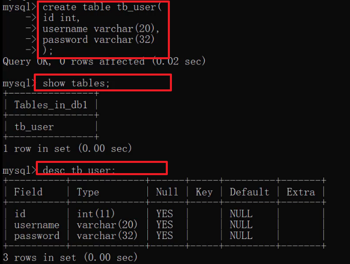 知道了创建表的语句,那么我们创建创建如下结构的表