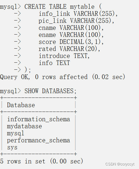 VARCHAR是用于存储可变长度字符串的数据类型,后面的数字表示最大长度。DECIMAL(3,1)表示一个包含一位小数的三位数字。TEXT是用于存储较长文本数据的数据类型,适合存储介绍等大块文本信息。