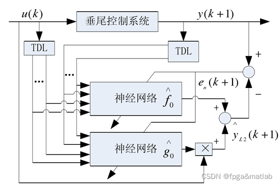 上述的辨识结构,通过控制对象的输入和输出的延迟分别进入F网络和G网络,然后通过网络输出和实际输出的误差对网络F和网络G进行在线学习。