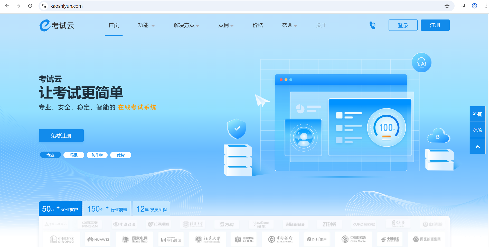 正因如此,考试云已服务超50万客户,涵盖北京大学、中国石油、网易、新东方、中国人保等头部机构,成为智能在线考试的事实标准。