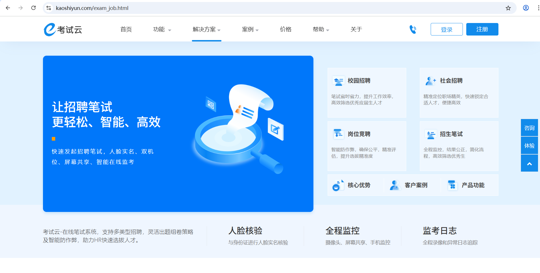 在数字化时代,企业招聘已经进入了全新的阶段,传统的线下笔试模式逐渐被高效、便捷、公平的在线笔试模式所取代。考试云在线笔试系统作为行业内的领军产品,凭借其高效的在线笔试功能、多重防作弊机制、实时成绩分析与反馈、定制化招聘笔试方案,以及强大的技术实力和优质的客户服务,为企业解决了招聘过程中的诸多痛点,解锁了全新的招聘体验。