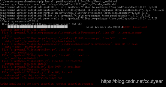 但是,在安装过程中我在其中发现了一个链接:https://mirror.baidu.com/pypi/packages/5a/25/4006b199125e70cb97c1974eb7b6deb36c21d5538c4407d0bb3514b1a98b/paddlepaddle-1.8.2-cp37-cp37m-win_amd64.whl