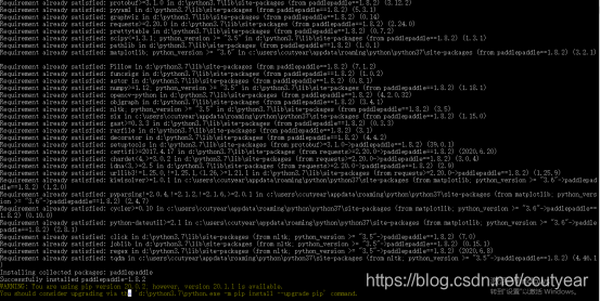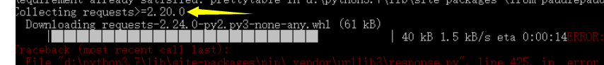 刚开始我直接通过我的反馈的错误寻找解决办法,结果却是没有找到。paddlepaddle的安装结果反馈的是requests的报错刚开始的时候想想也确实挺奇怪的,现在一看确实是requests的问题。