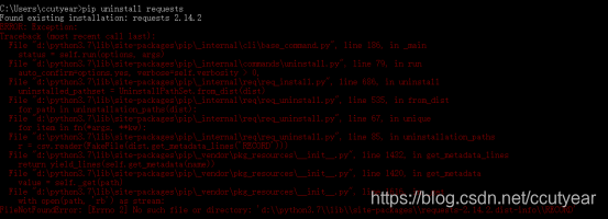 我出现的报错是:ERROR: Could not install packages due to an EnvironmentError: [Errno 2] No such file or directory: 'd:\\python3.7\\lib\\site-packages\\requests-2.14.2.dist-info\\RECORD