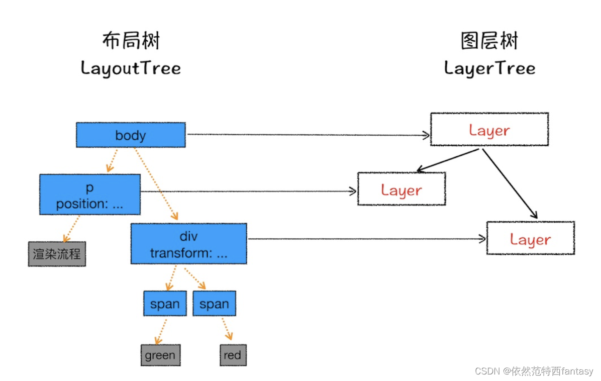 针对页面种不同的层叠层级,渲染引擎会为特定的节点生成专用的图层,并生成一颗图层树。 浏览器的页面实际被分成了很多图层,这些图层叠后合成了最终的页面。 并不是每一个节点都包含一个图层,如果一个节点没有对应的层,则这个节点就从属于父节点的图层。