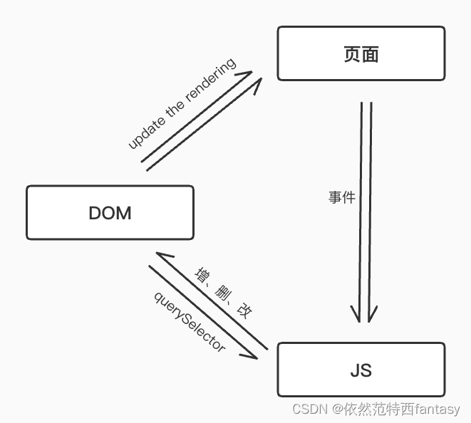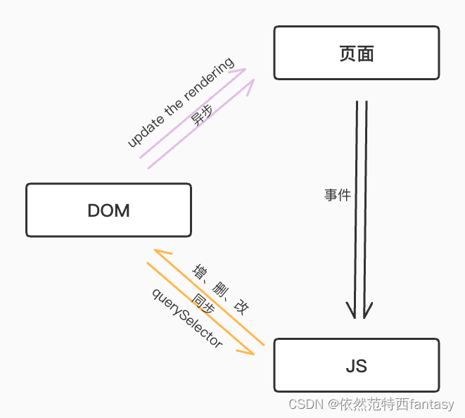 当然,DOM不等于页面,JS也没有直接操作页面的功能。JS可操作DOM,而DOM是生成页面的源。DOM更新,和页面更新是两回事。
