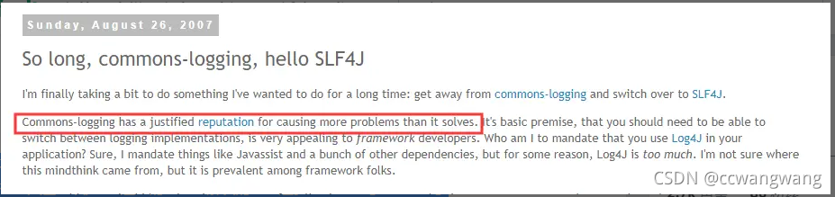 但是好景不长,在使用过程中,虽然现在日志系统在JCL的统一下很优雅,很美好,但大家发现了JCL还不够好,有些人甚至认为JCL造成的问题比解决的问题还多...emmm【抱怨地址】