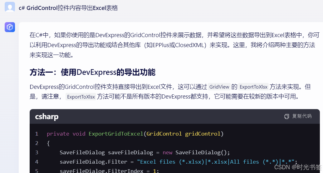 1. 打开文心一言网址:文心一言 (baidu.com),输入指令:c# GridControl控件内容导出Excel表格。