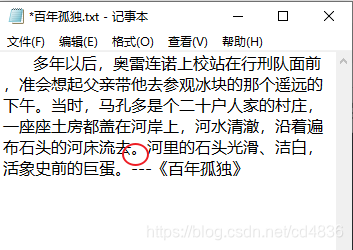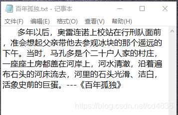 现在在D盘上有个文件,叫做“百年孤独.txt”,打开文件如下内容: