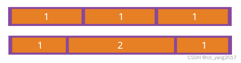 如果所有项目的flex-grow属性都为1,则它们将等分剩余空间(如果有的话)。如果一个项目的flex-grow属性为2,其他项目都为1,则前者占据的剩余空间将比其他项多一倍(平分4份,项目2占2份)。