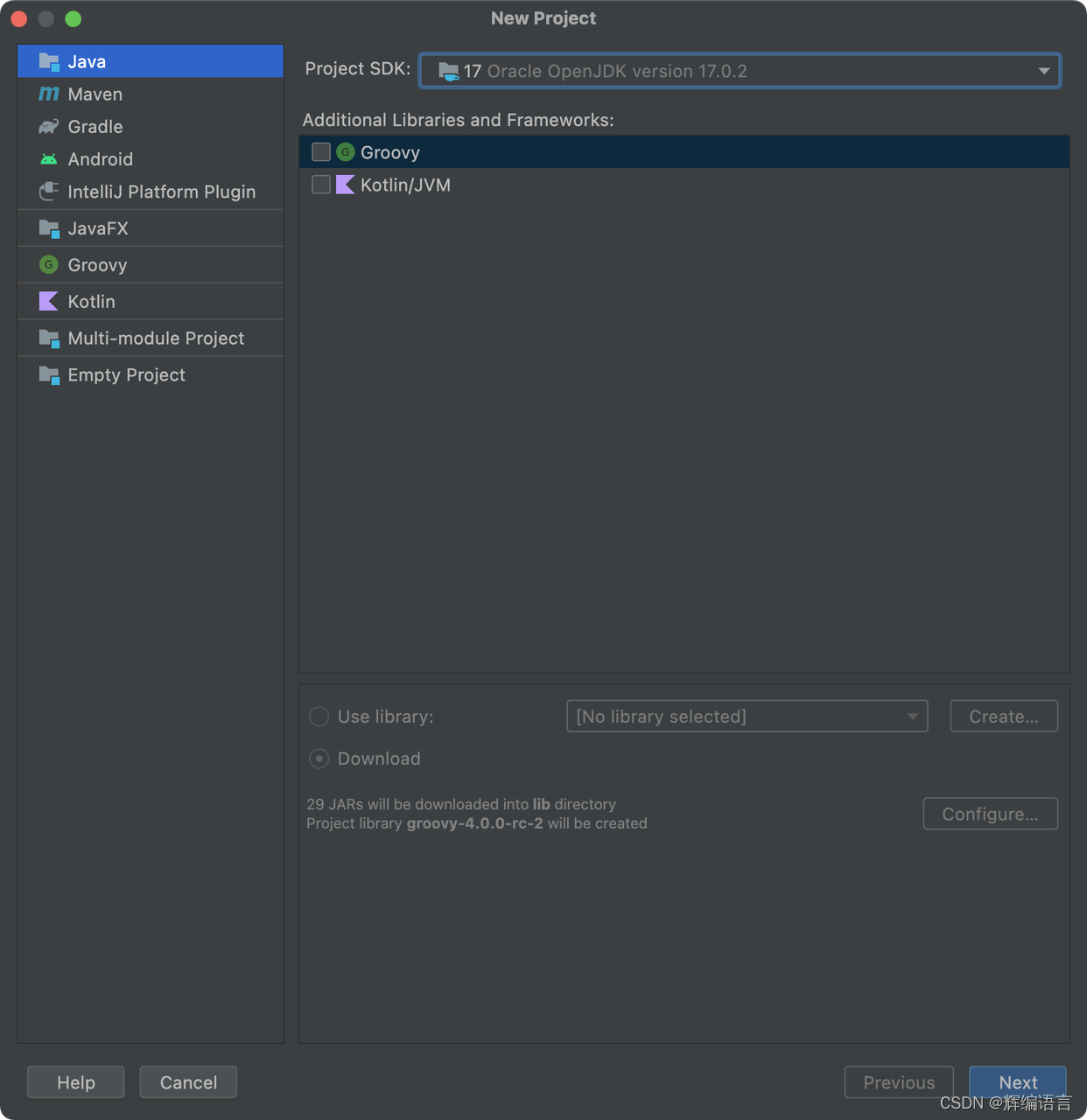 我们新建一个项目,点击new project,弹窗中选中Java,默认project SDK为已安装的SDK版本,点击Next下一步