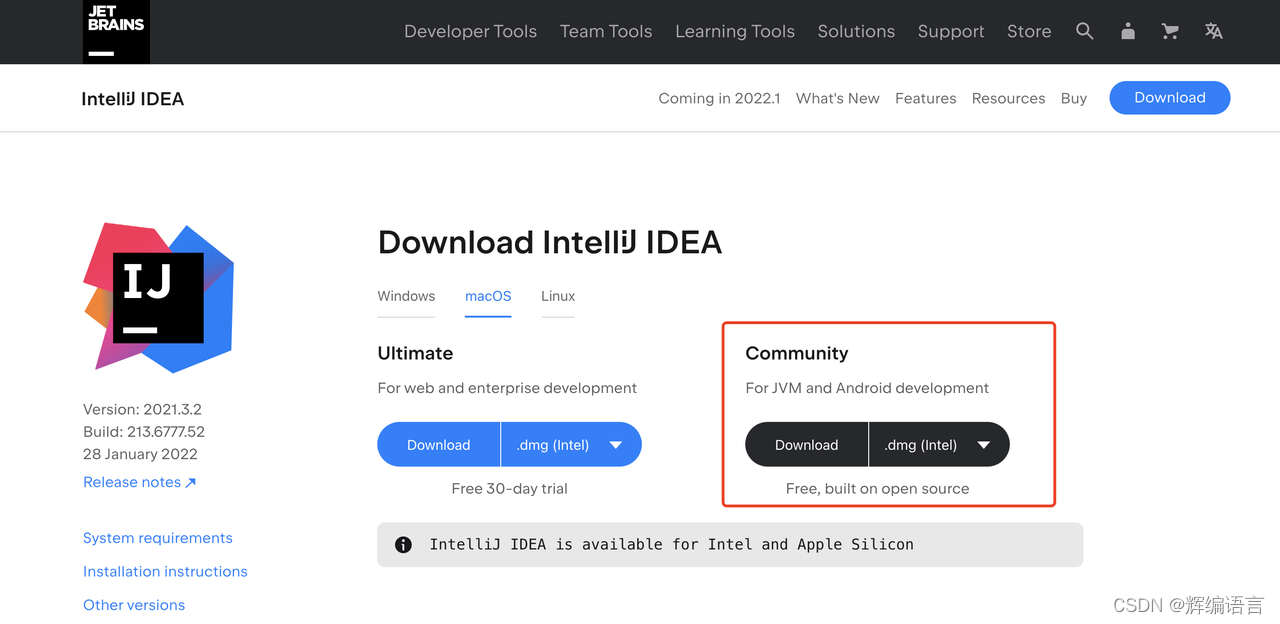 打开官网下载地址:https://www.jetbrains.com/idea/download