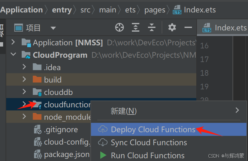 或单独部署有修改后的云数据库:右击clouddb->Deploy Cloud DB;云函数:右击cloudfunctions->Deploy Cloud Functons;