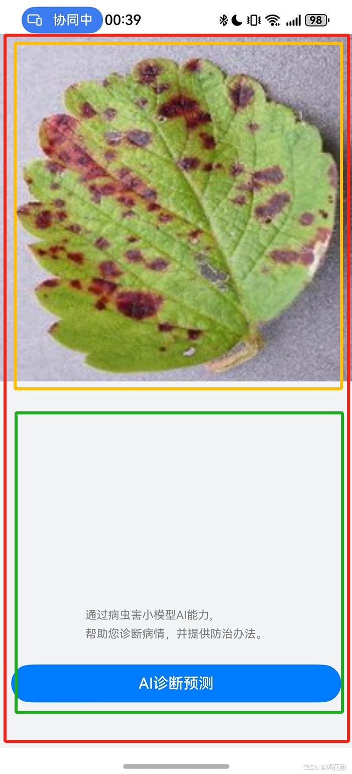 打开我们前面新建的PestInfoPage.ets文件,自定义一个AI诊断页面组件PestDiagnosisView,接收2个参数:病虫害实体对象和图片占满屏幕宽度。代码如下: