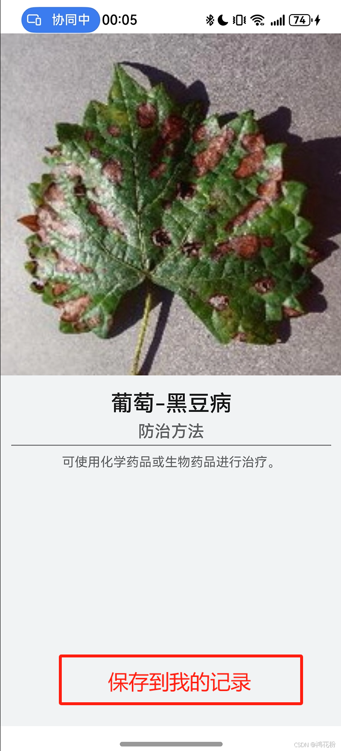 病虫害详细页面信息视图中需要增加“保存”按钮,把新增的AI诊断结果保存到AGC云数据库、云存储。