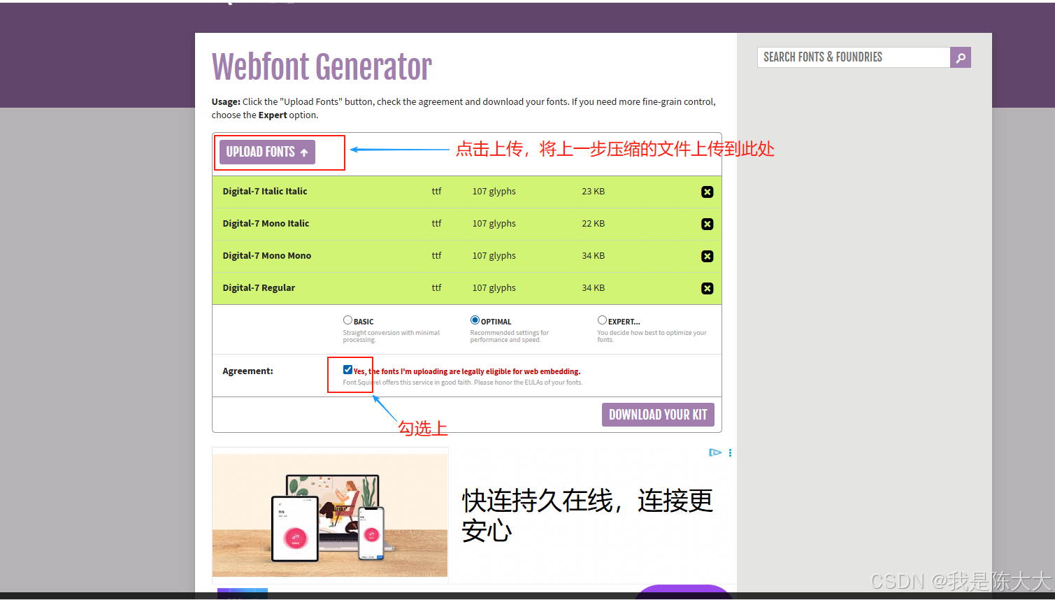 3、下载的字体文件格式不能直接使用,需要转换格式,我知道有两个地址可以转换,我这使用的是2